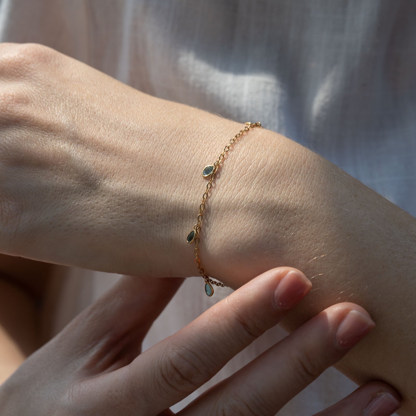 Characterised by their drooping stems and soft violet-blue tones, bluebells have long inspired quiet observations of nature. This bracelet draws from that form — each slice diamond placed in a gentle line, with subtle variations in colour from one to the next. The stones hang with a natural ease, echoing the way bluebells fall and gather. More than gold and diamonds, it reflects a simple idea taken from nature and kept close to the body.