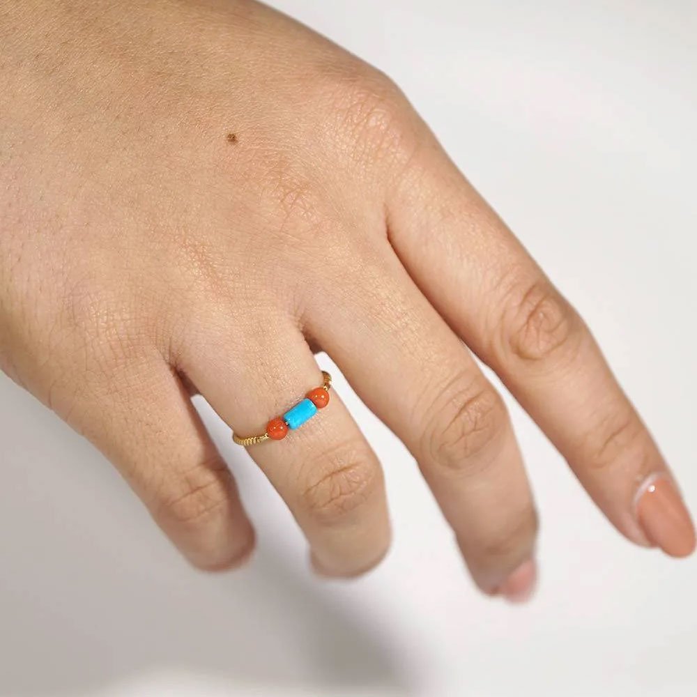 | Diamond & Color stone: | Turquoise beads (1pcs.0.44cts), Coral beads (2pcs 0.54cts) |