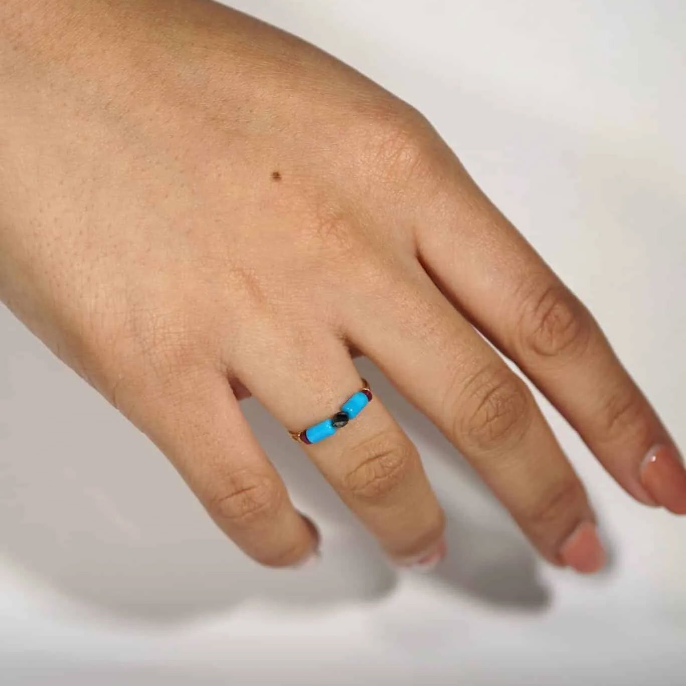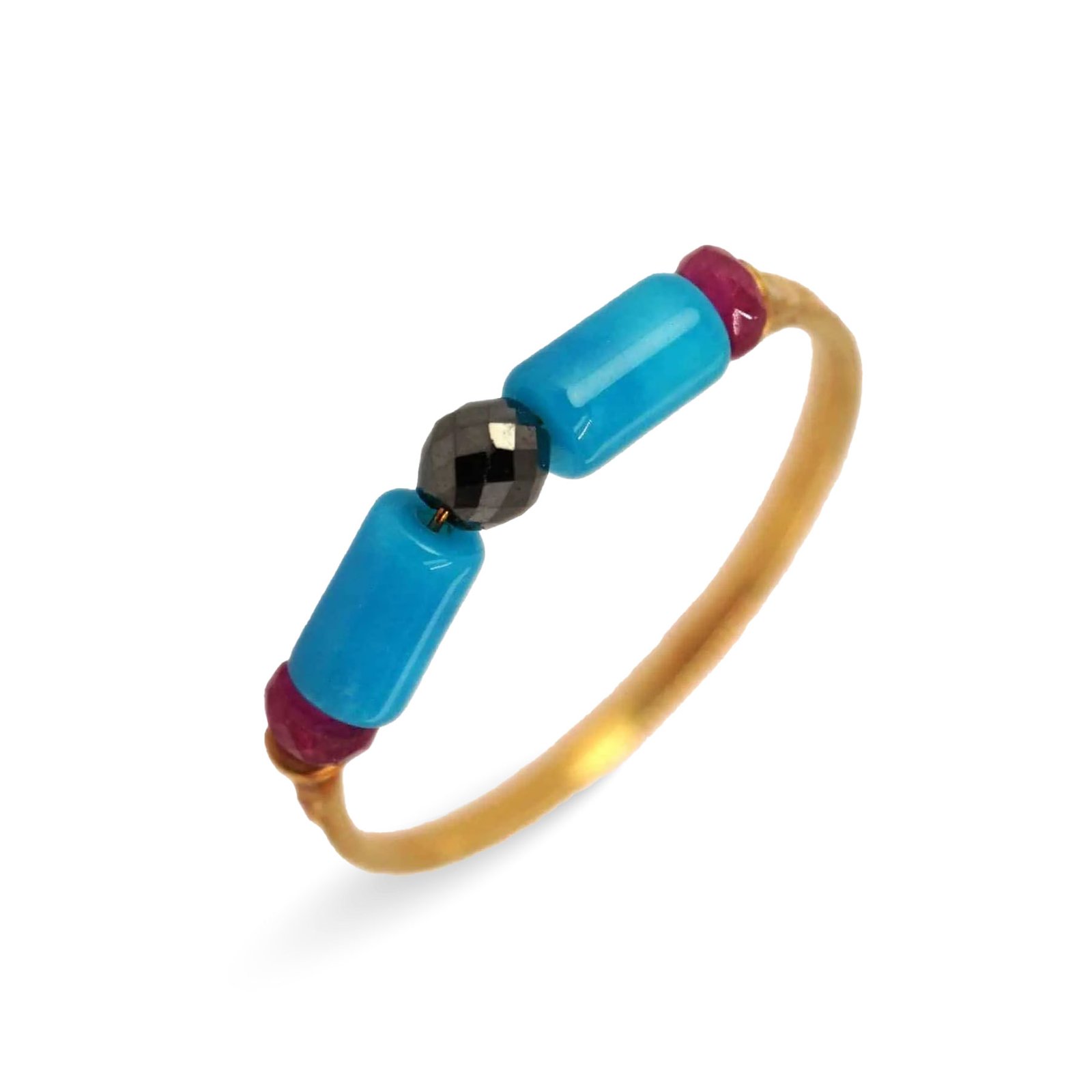 | Diamond & Color stone: | Black briolette diamonds (1pcs 0.22cts), turquoise beads (2pcs 0.90cts), Ruby beads (2pcs 0.22cts) |