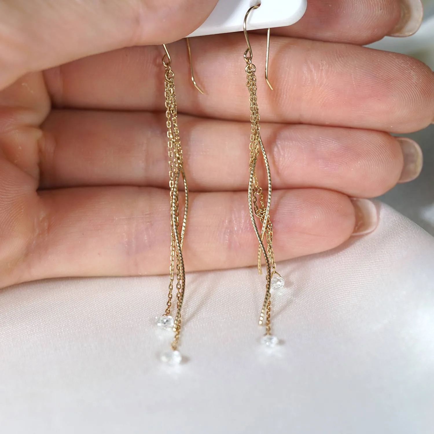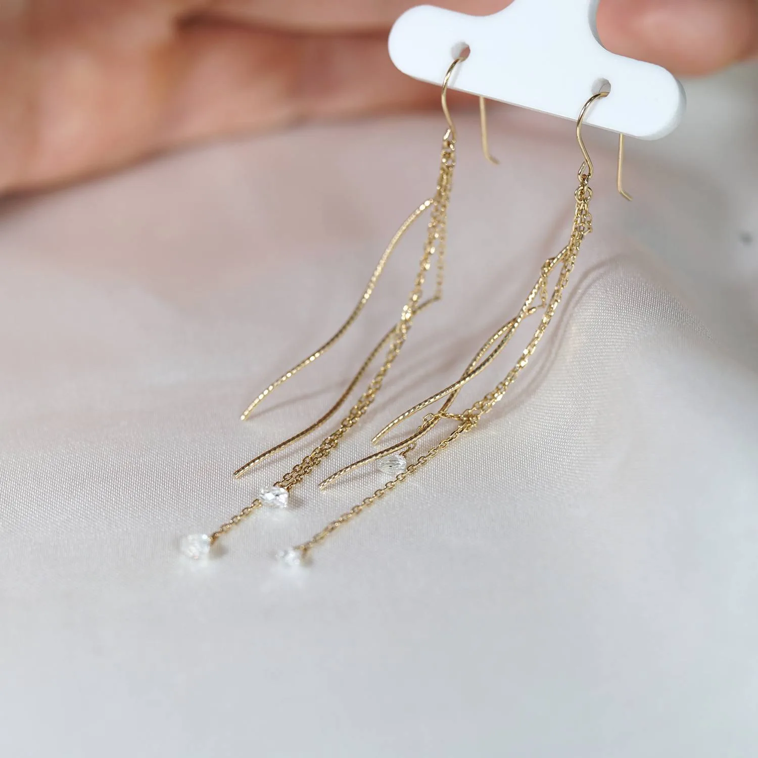 | Diamond & Color stone: | Natural white briolette cut diamond (4pcs 0.60cts) |